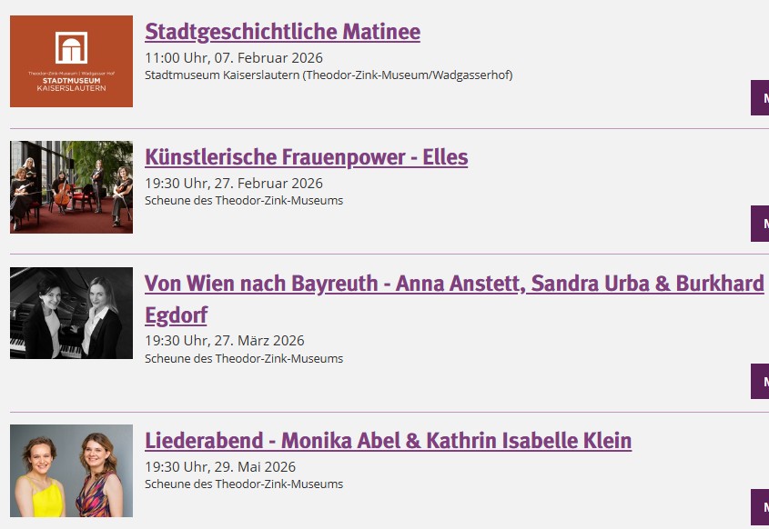 Screenshot des Veranstaltungskalenders für das Stadtmuseum vom 06.02.2026